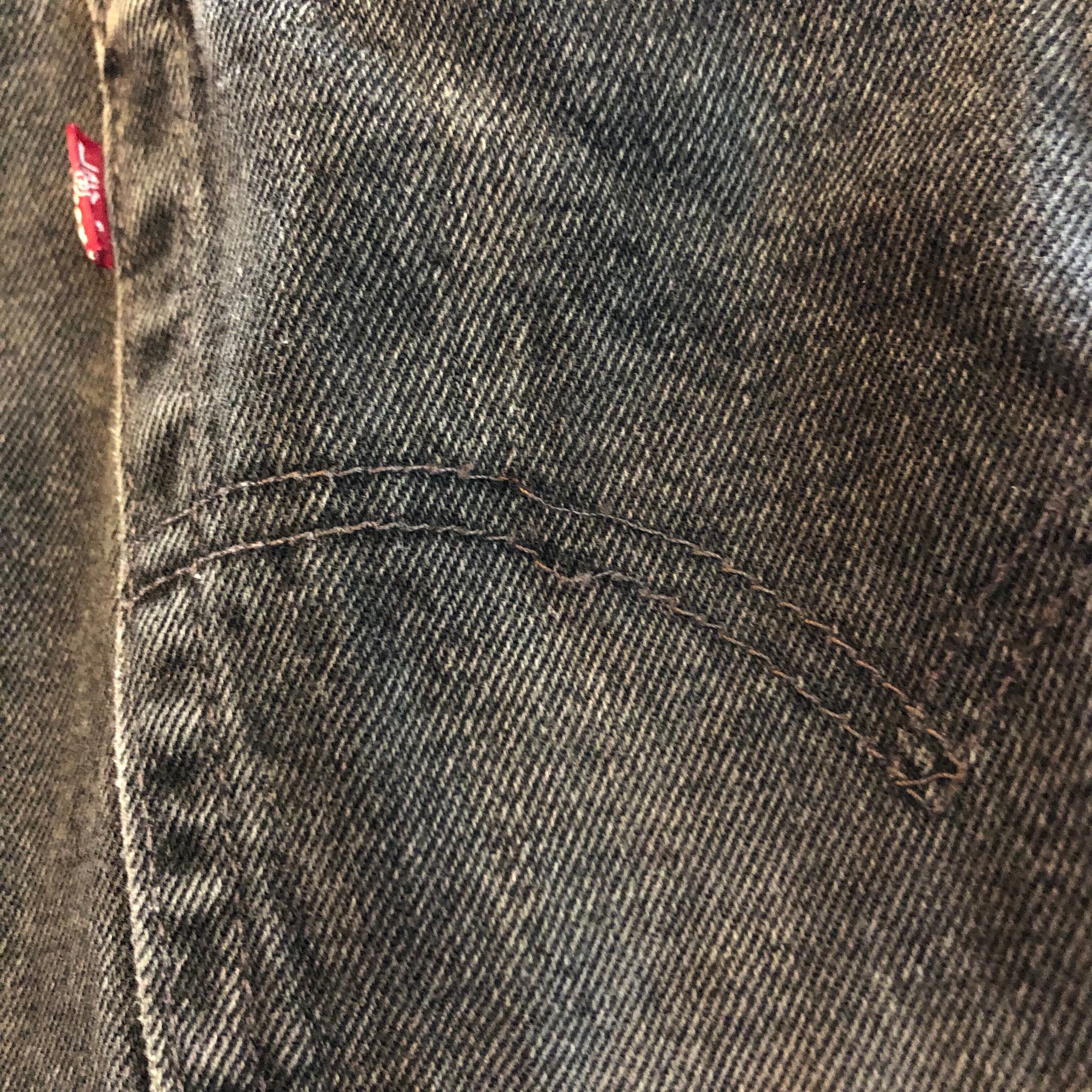 裾に若干のスレによる破れ、尻ポケットに若干の糸ほつれがございます。