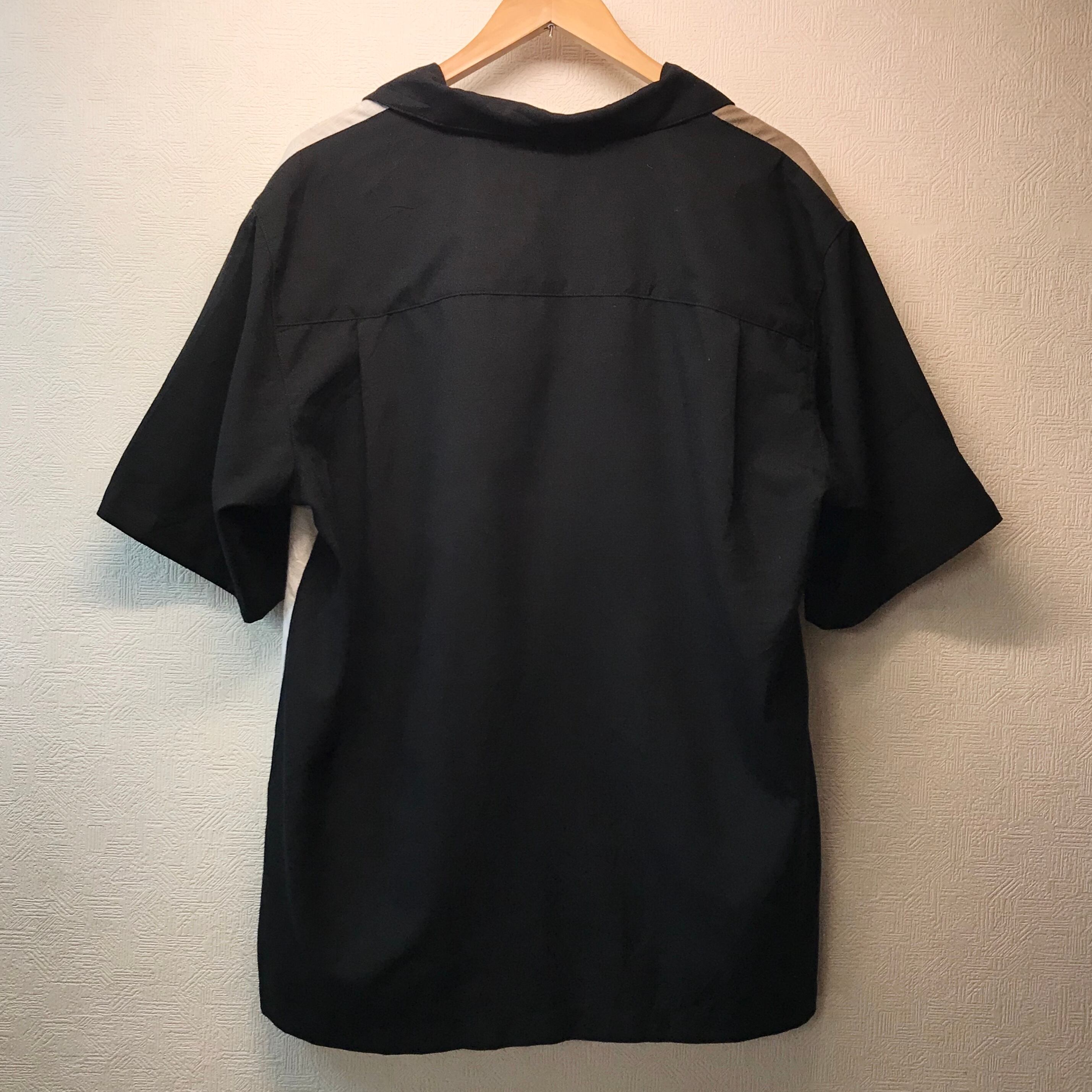 左右非対称のカラーリングのオープンカラーシャツです。