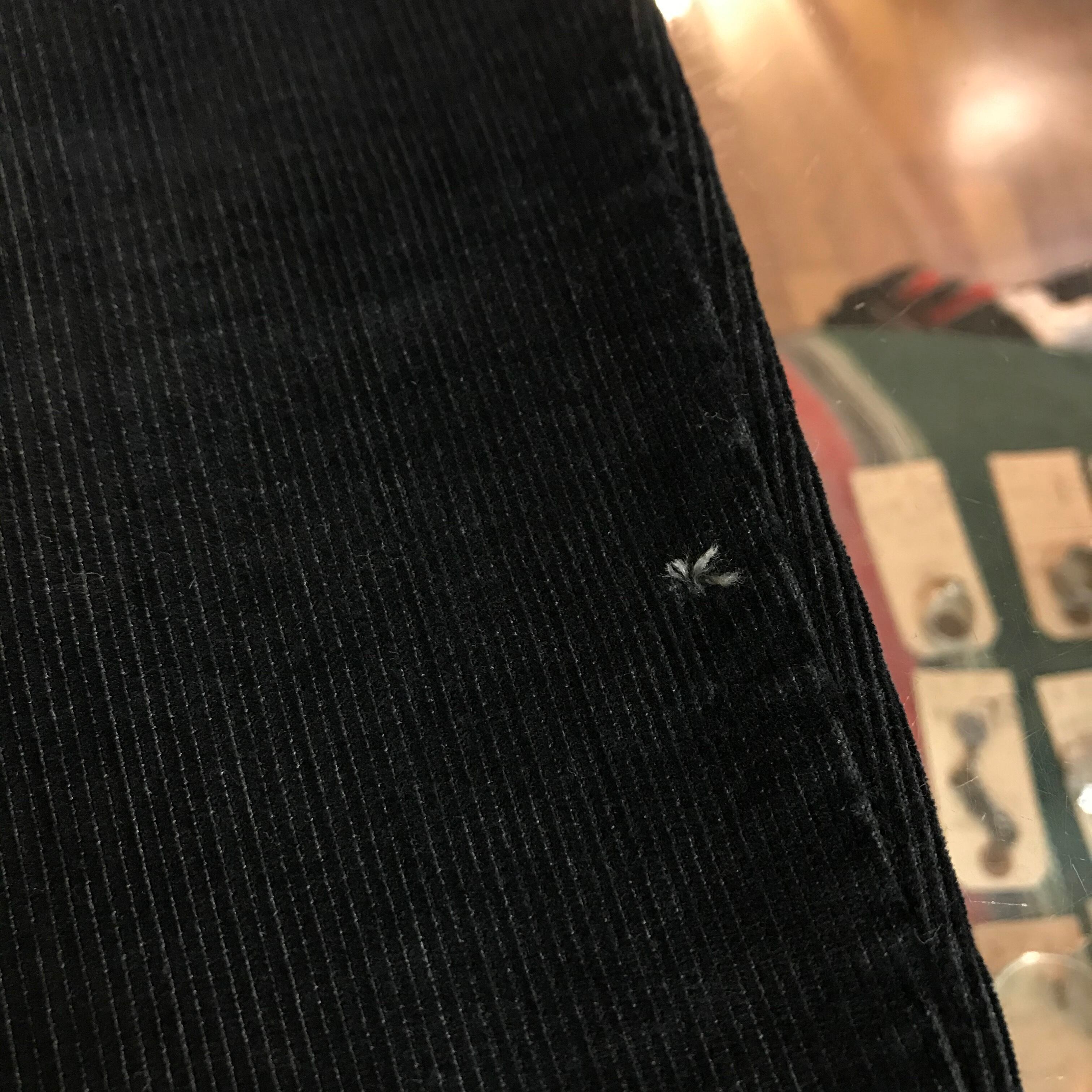 全体は後染めのブラックになっており、コーデュロイ特有の光沢感なども相まって、上品な印象を与えます。