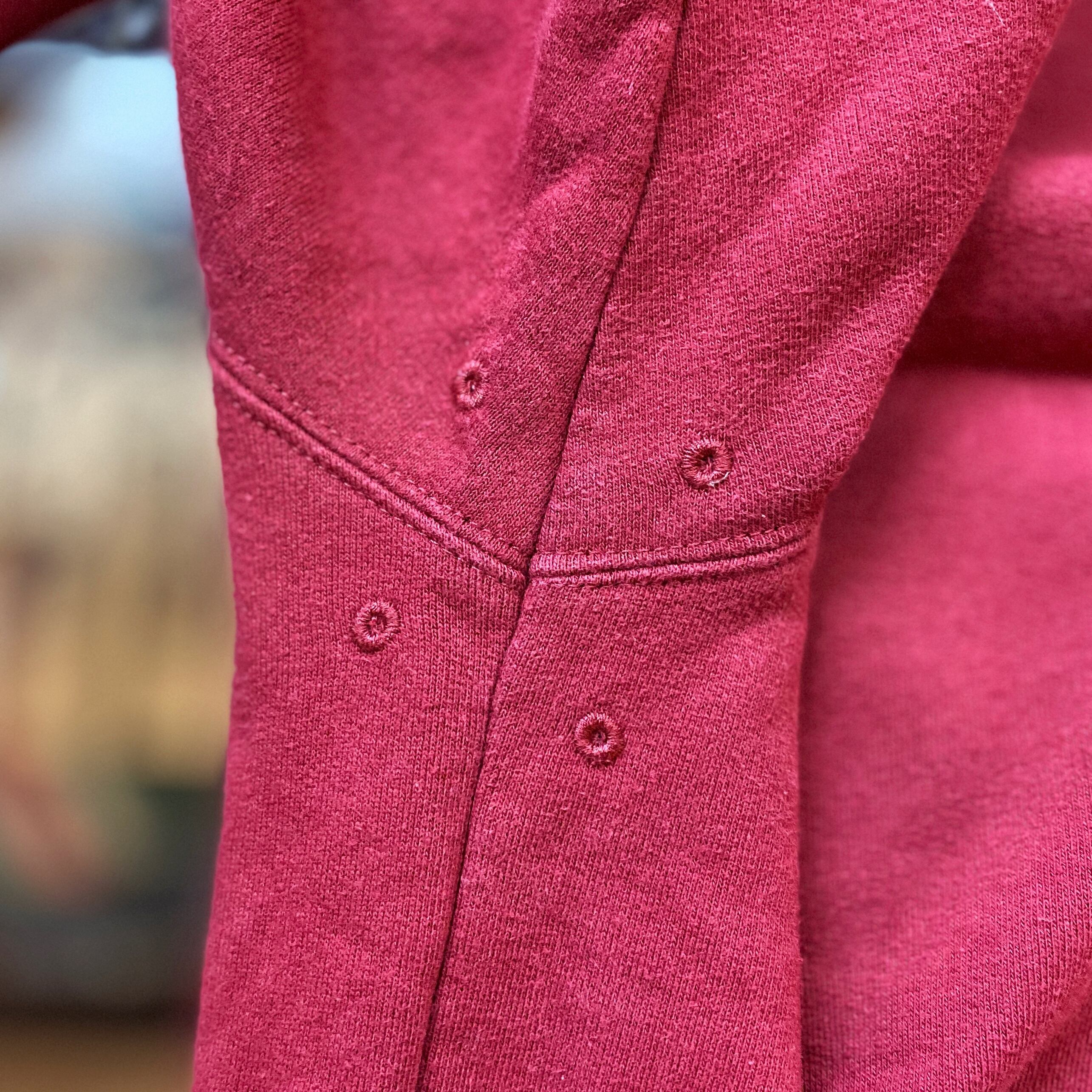 バーガンディのボディにマッチするゴールドの刺繍です。