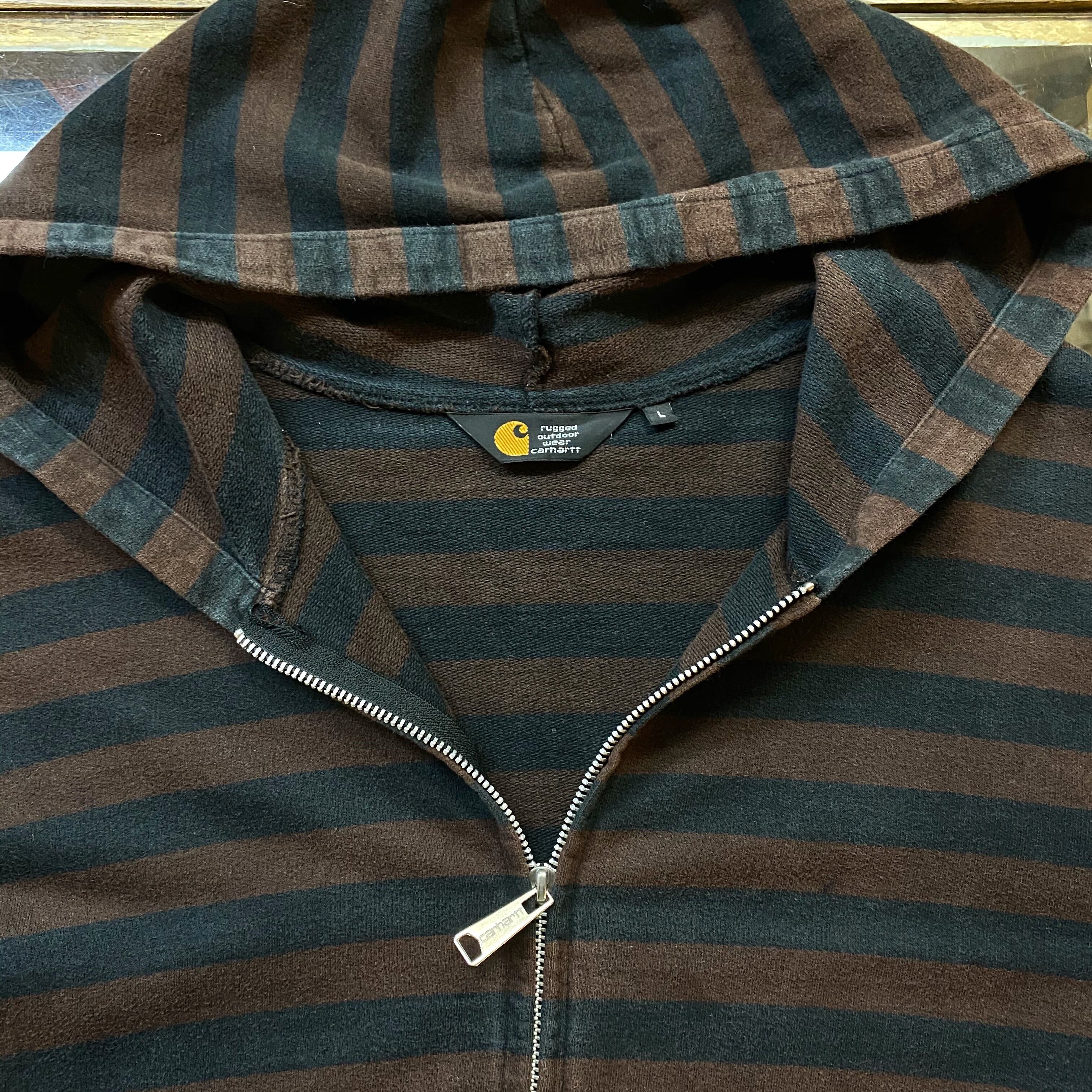 カーハートのボーダー柄ジップアップパーカーです。