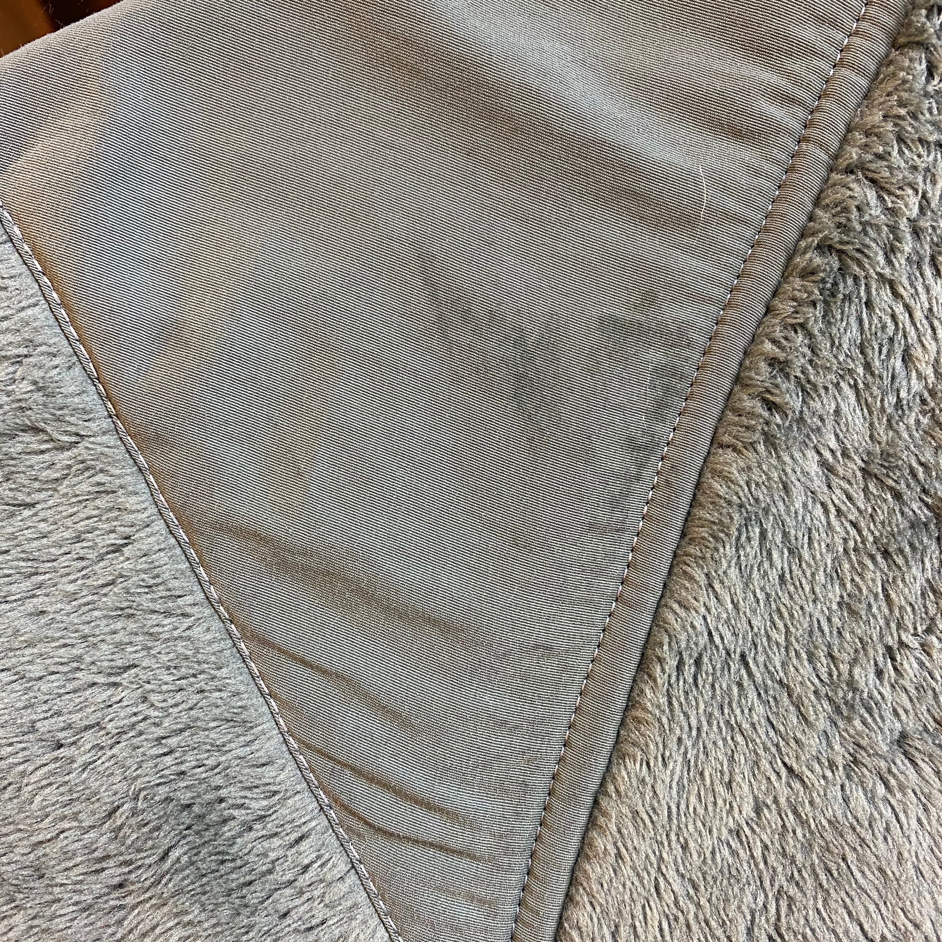 裾のパイピングやポケットの内側など、スレによる毛玉が見られます。