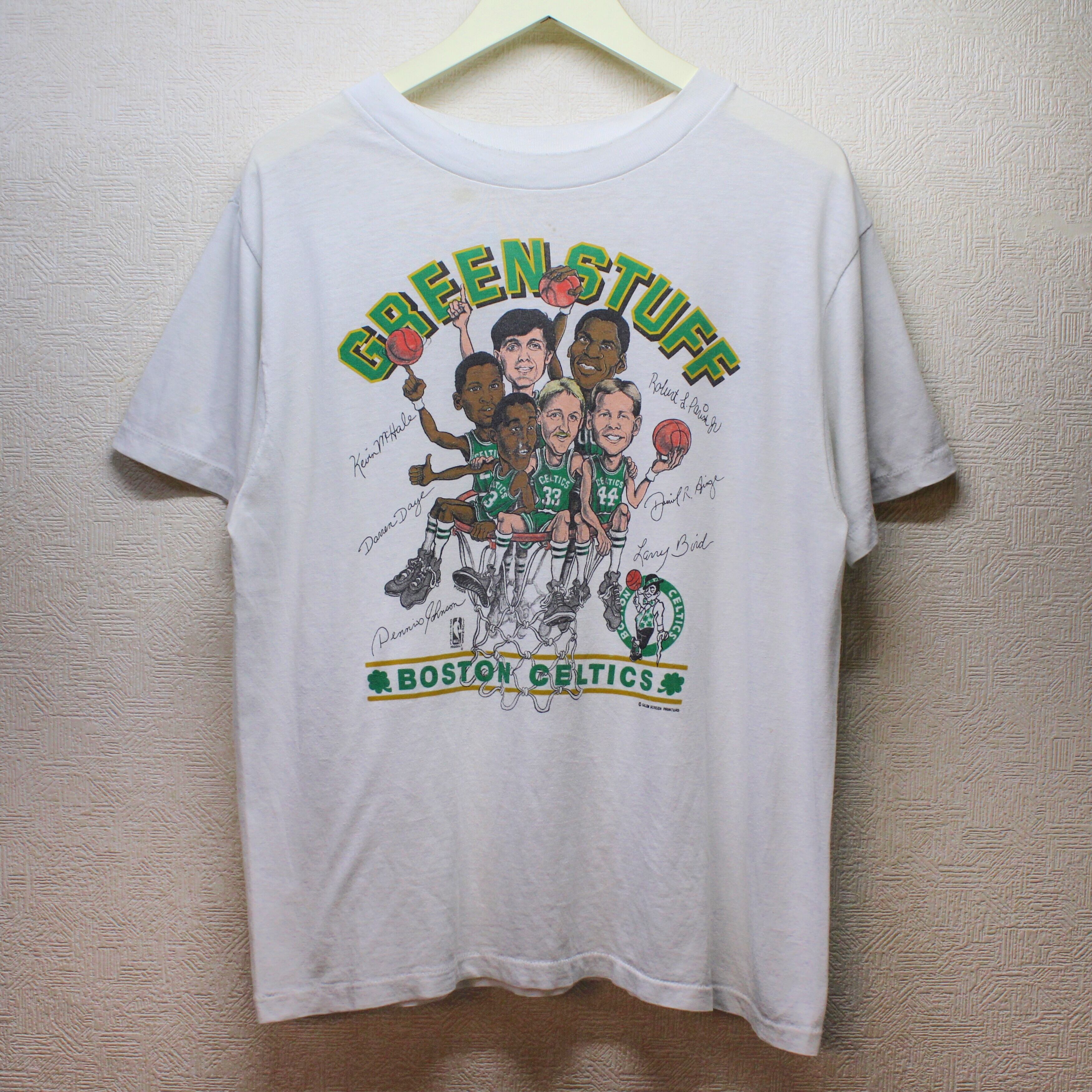 プリントされているのは、デニス・ジョンソン #3、ケビン・マクヘイル #32、ロバート・パリッシュ #00、ダニー・エインジ #44、ダレン・ダイエ #20、ラリー・バード #33の6選手。